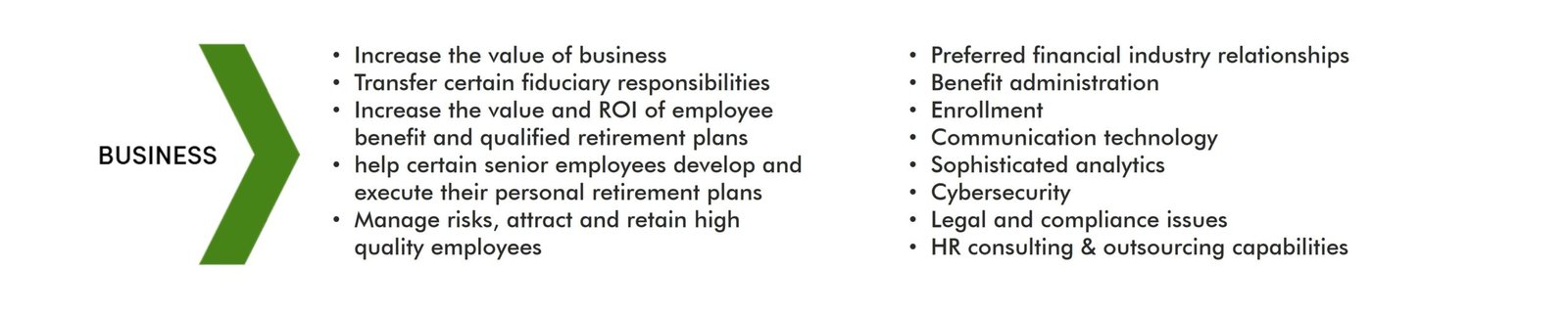 Increase the value of your business by transferring certain fiduciary responsibilities, and by increasing the value and ROI of your employee benefit and qualified retirement plans.